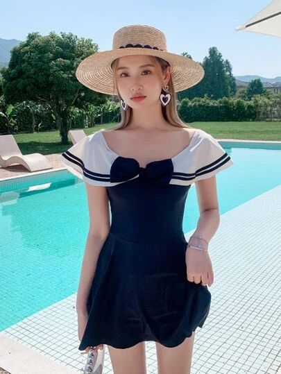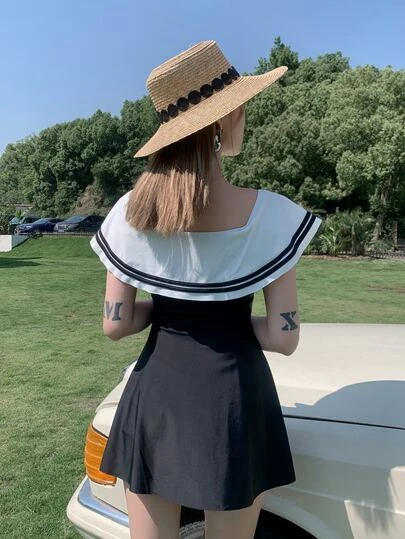 Sexy Sailor Collar Slim One-piece Swimsuit