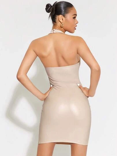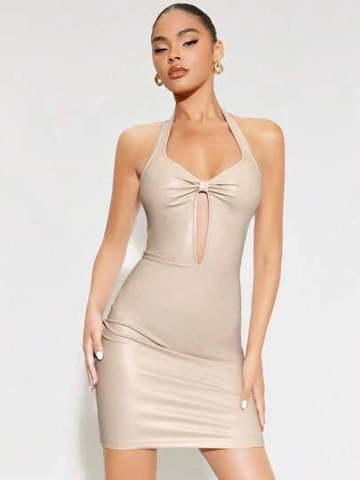 SHEIN BAE Cut Out Front PU Leather Halter Bodycon Dress