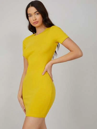 SHEIN BASICS 100% Cotton Solid Bodycon Dress