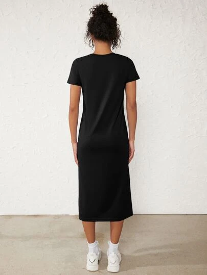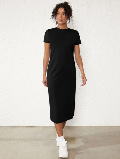 SHEIN BASICS 100% Cotton Solid Tee Dress