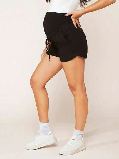 SHEIN BASICS Maternity 100% Cotton Drawstring Waist Slant Pocket Shorts