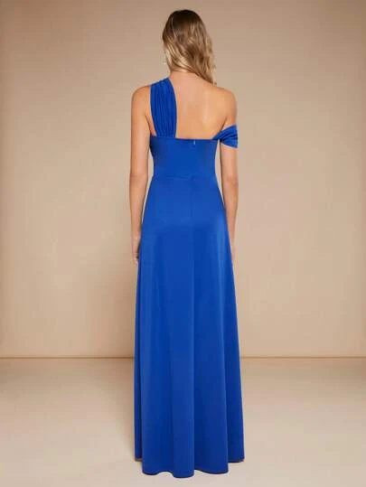 SHEIN Belle Asymmetrical Neck Split Thigh Dress