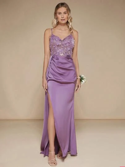 Be the first to review “SHEIN Belle Contrast Sequin Split Thigh Satin Cami Dress” Cancel reply