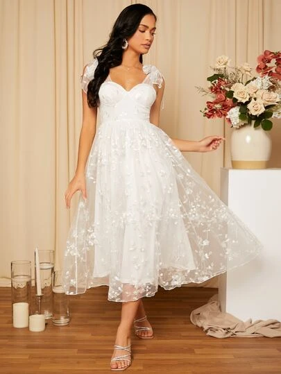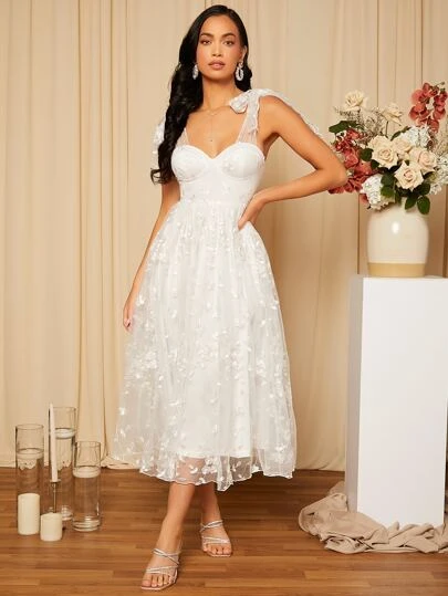 SHEIN Belle Floral Embroidery Tie Shoulder Bustier Schiffy Wedding Dress