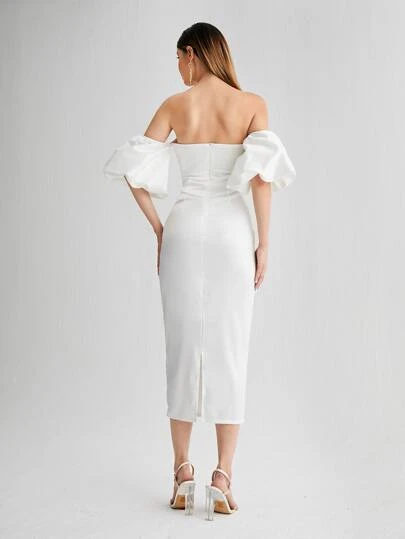 SHEIN Belle Off Shoulder Surplice Front Wedding Dress