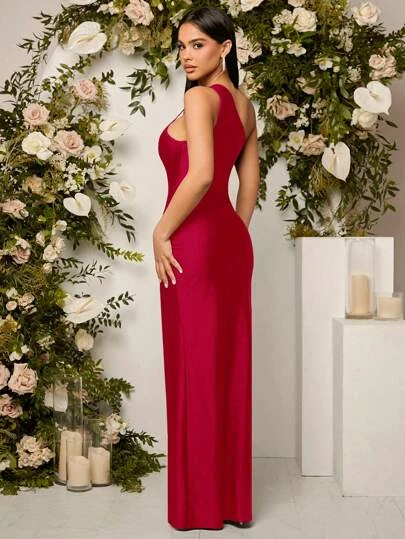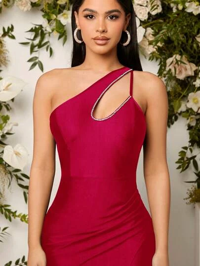 SHEIN Belle One Shoulder Cut Out Ruched Split Thigh Dress