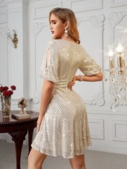 Be the first to review “SHEIN Belle Surplice Neck Cut Out Puff Sleeve Sequin Dress” Cancel reply
