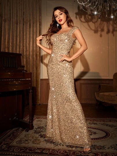 SHEIN Belle Zip Back Mermaid Hem Sequin Dress