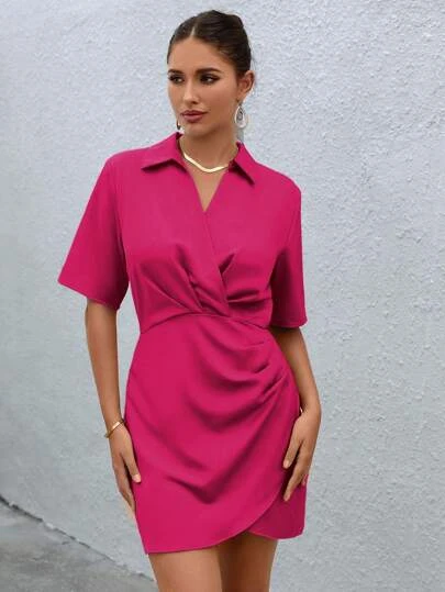 SHEIN BIZwear Solid Ruched Wrap Hem Dress Workwear