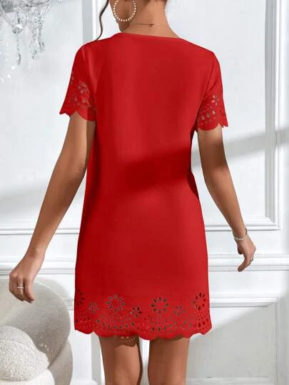 SHEIN Clasi Laser Cut Scallop Trim Dress