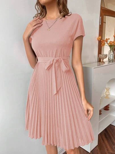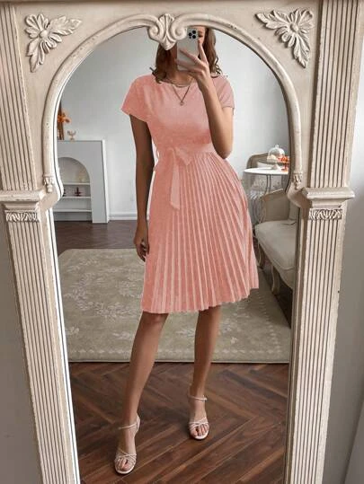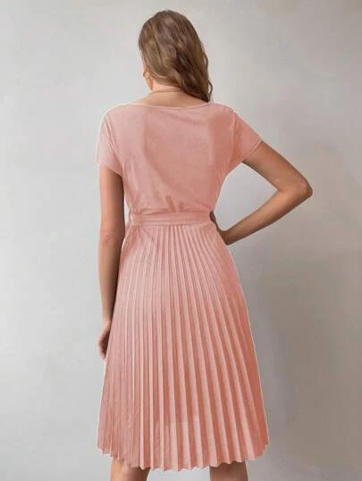 SHEIN Clasi Pleated Hem Self Belted Dress