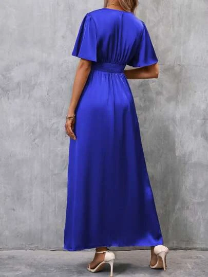 SHEIN Clasi Plunging Neck Butterfly Sleeve Split Thigh Dress
