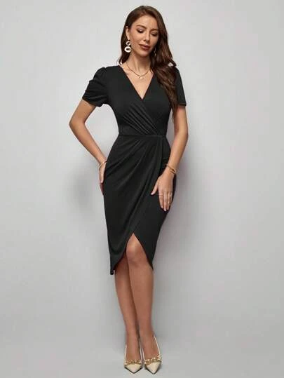Be the first to review “SHEIN Clasi Solid Wrap Hem Dress” Cancel reply