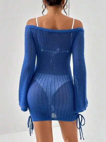 SHEIN Essnce Off Shoulder Drawstring Side Cover Up Dress Without Bikini