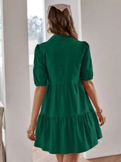 SHEIN Frenchy Button Front Ruffle Hem Smock Dress
