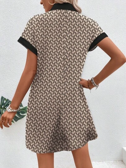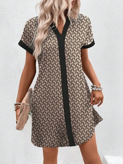 SHEIN LUNE Allover Print Contrast Trim Batwing Sleeve Dress