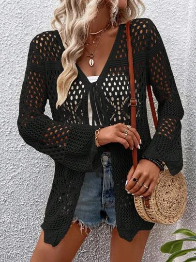 SHEIN LUNE Hollow Out Tie Front Kimono