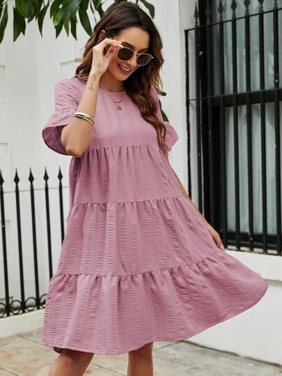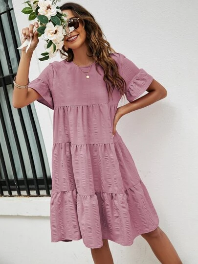 SHEIN LUNE Solid Flounce Sleeve Smock Dress