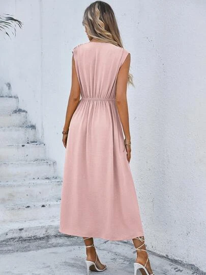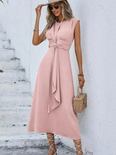 SHEIN LUNE Solid Tie Front Sleeveless A-line Dress