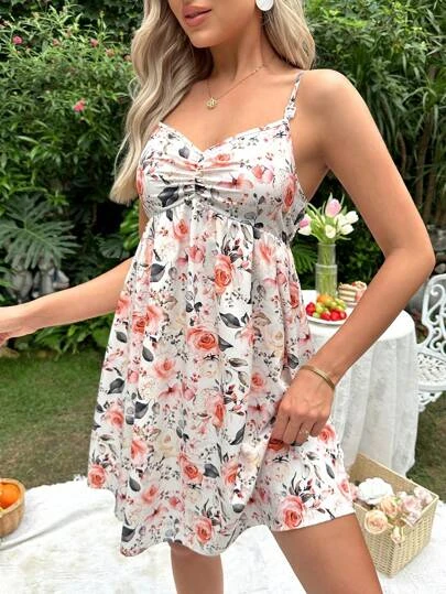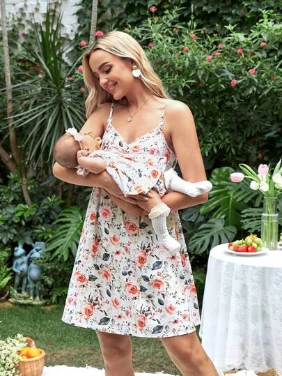 SHEIN Maternity 1pc Nursing Floral Print Ruched Detail Cami Dress