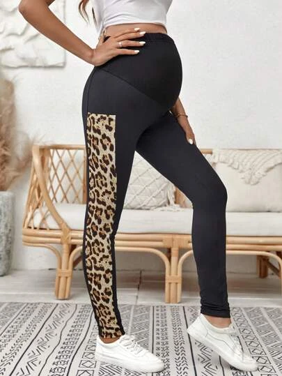 SHEIN Maternity Adjustable Waist Leopard Print Phone Pocket Leggings