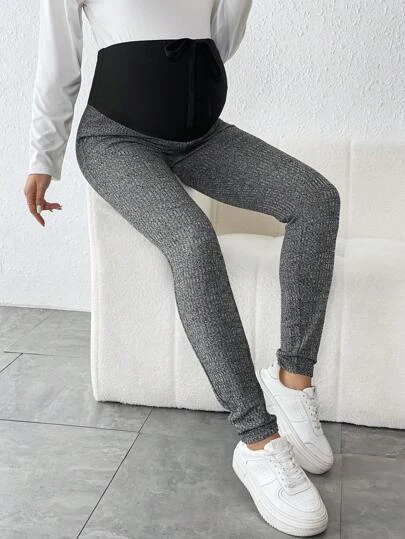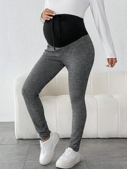 SHEIN Maternity Adjustable Waist Marled Knit Leggings