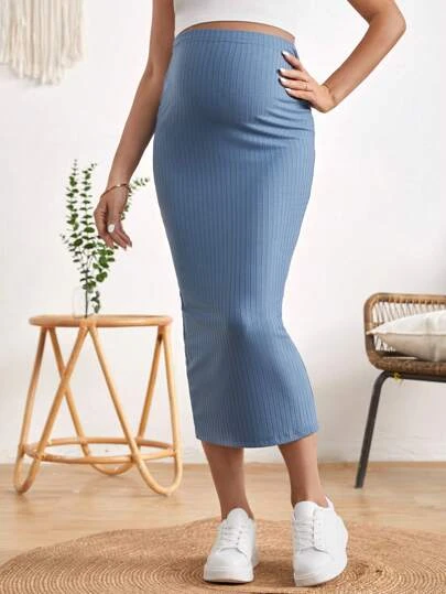 SHEIN Maternity Adjustable Waist Split Thigh Rib-knit Pencil Skirt