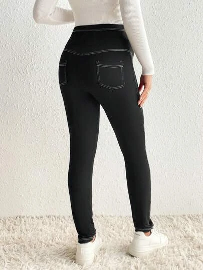 SHEIN Maternity Adjustable Waist Top-stitching Leggings
