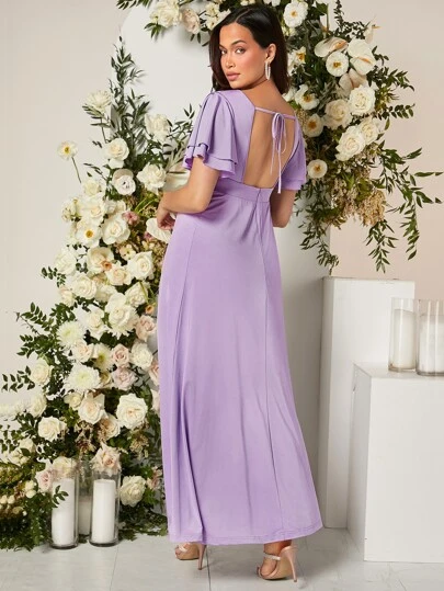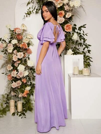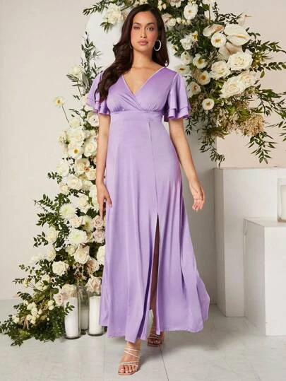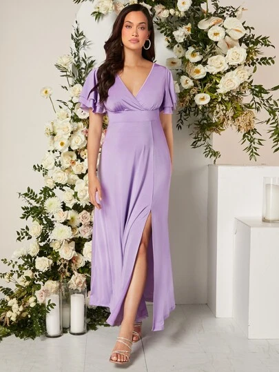 SHEIN Maternity Butterfly Sleeve Split Thigh Satin Dress