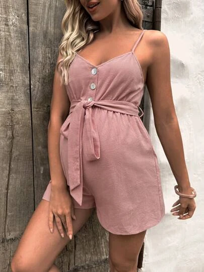 SHEIN Maternity Button Front Belted Cami Romper