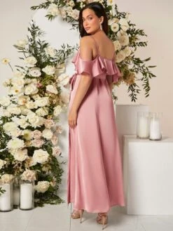 Be the first to review “SHEIN Maternity Cold Shoulder Knot Side Wrap Hem Satin Dress” Cancel reply