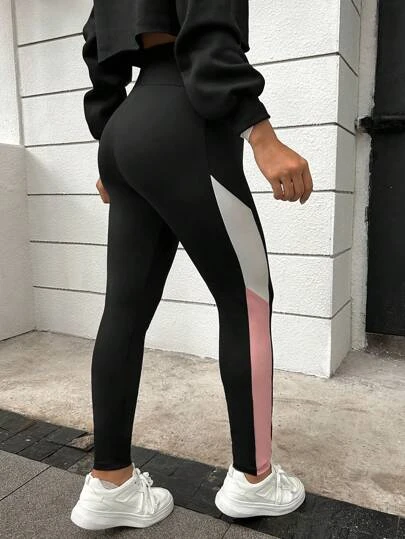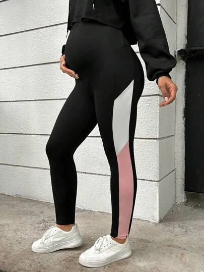 SHEIN Maternity Colorblock Adjustable Waistband Contrast Sideseam Leggings