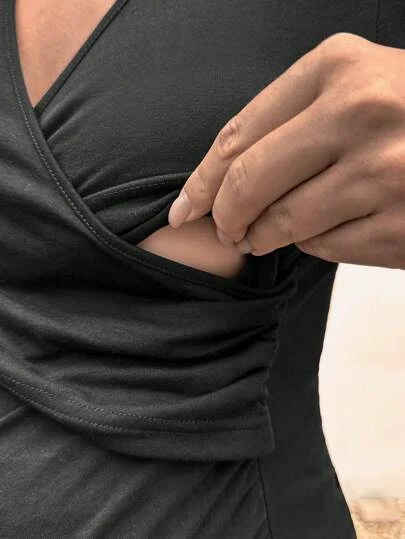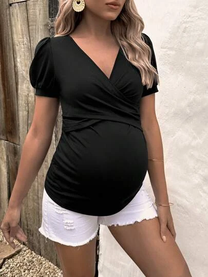 SHEIN Maternity Cross Wrap Front Puff Sleeve Nursing Tee