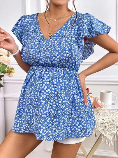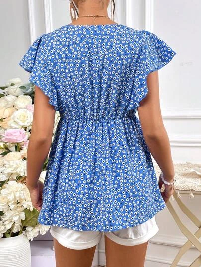 SHEIN Maternity Ditsy Floral Print Butterfly Sleeve Peplum Blouse