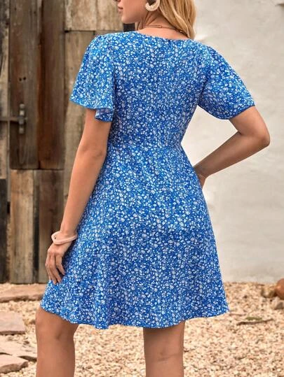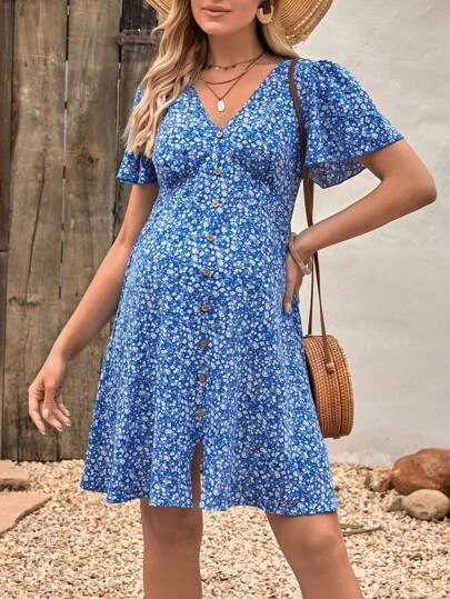 SHEIN Maternity Ditsy Floral Print Button Front Dress