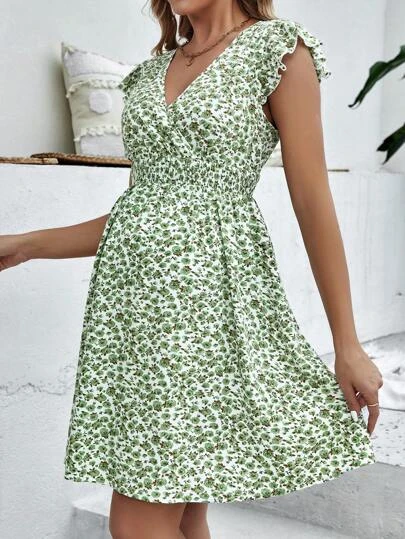 SHEIN Maternity Ditsy Floral Print Ruffle Trim Dress