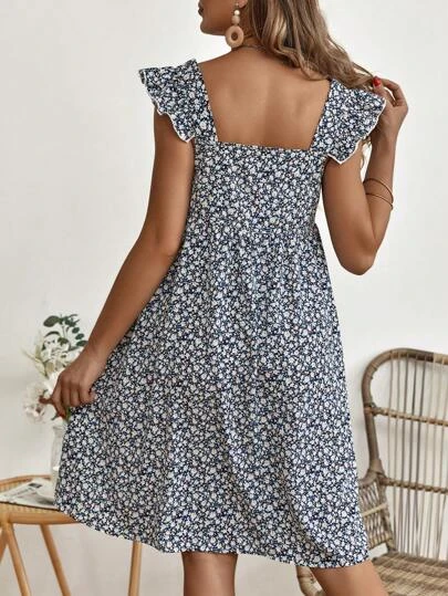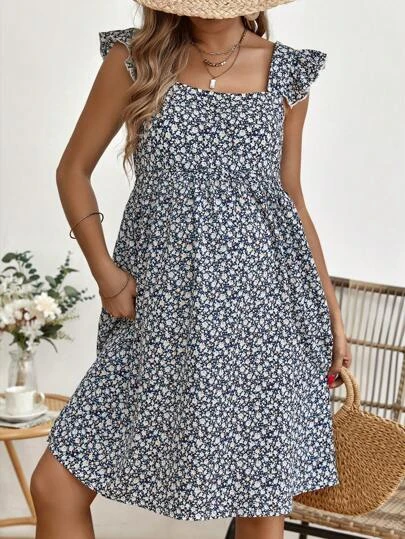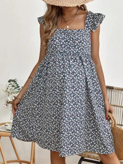 SHEIN Maternity Ditsy Floral Print Ruffle Trim Smock Dress