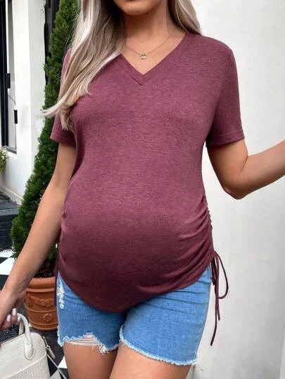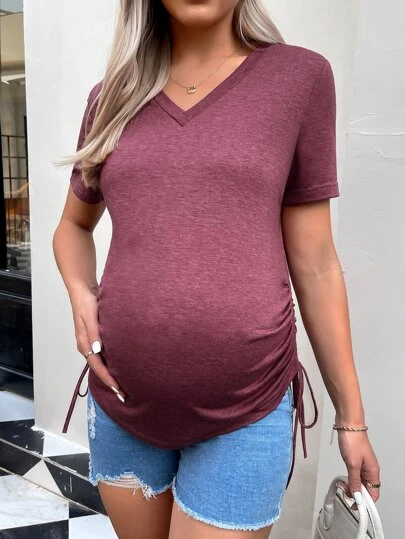 SHEIN Maternity Drawstring Side V Neck Tee