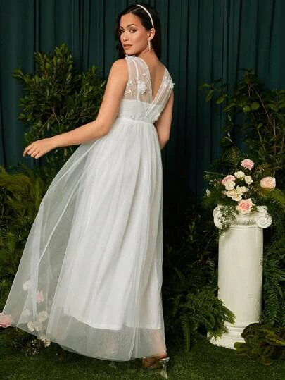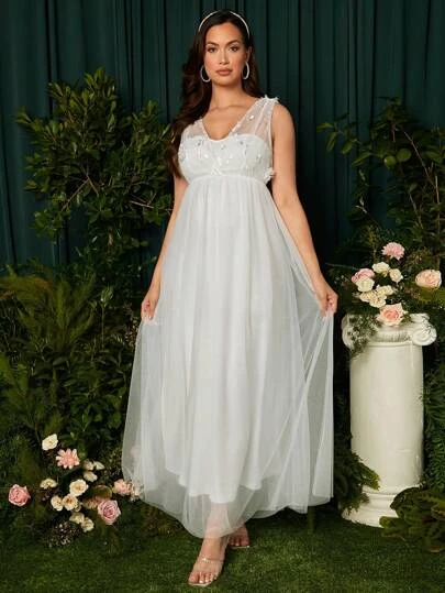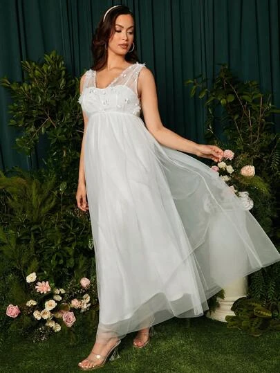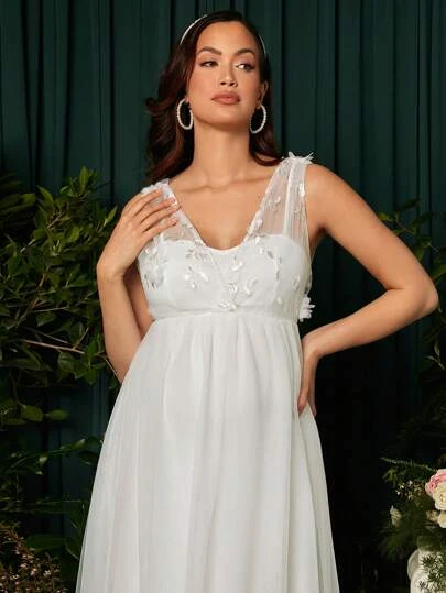 SHEIN Maternity Floral Embroidery Mesh Overlay Maxi Dress