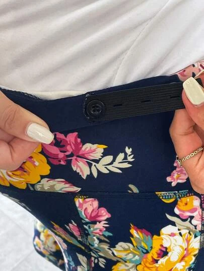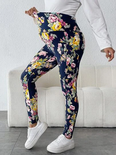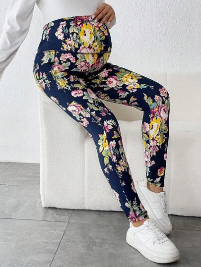 SHEIN Maternity Floral Print Adjustable Waist Leggings With Phone Pocket