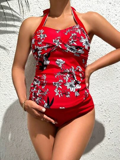 SHEIN Maternity Floral Print Halter Bikini Swimsuit