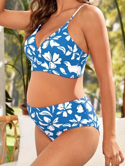 SHEIN Maternity Floral Print High Waist Bikini Swimsuit