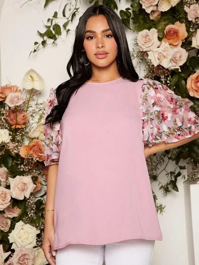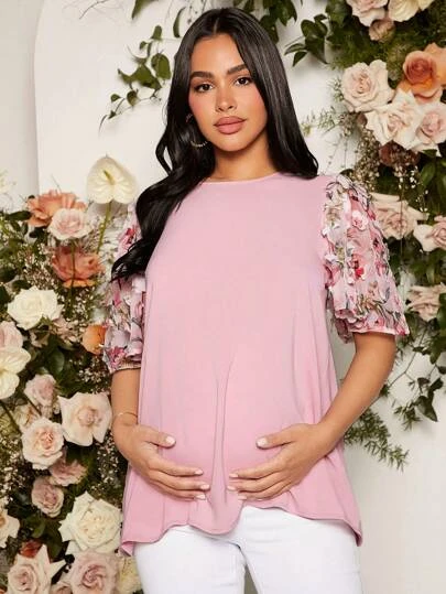 SHEIN Maternity Floral Print Puff Sleeve Blouse
