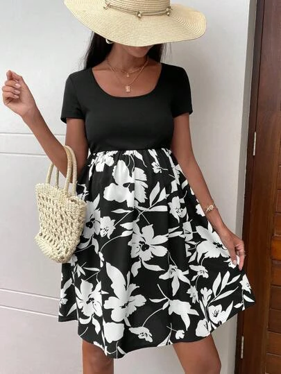 SHEIN Maternity Floral Print Scoop Neck Dress