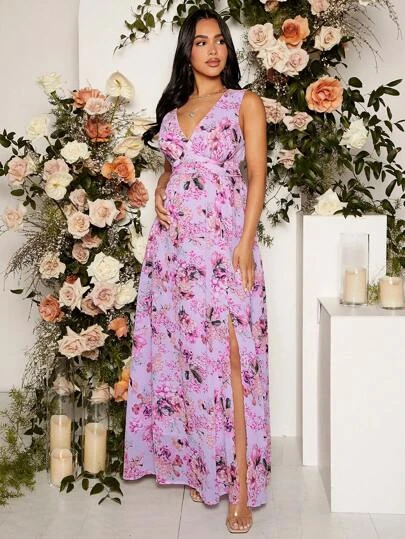 SHEIN Maternity Floral Print Split Thigh Dress