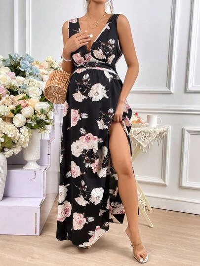 SHEIN Maternity Floral Print Split Thigh Dress