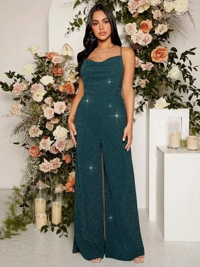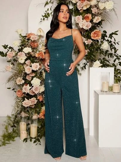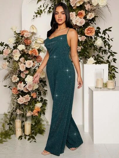 SHEIN Maternity Glitter Wide Leg Cami Jumpsuit