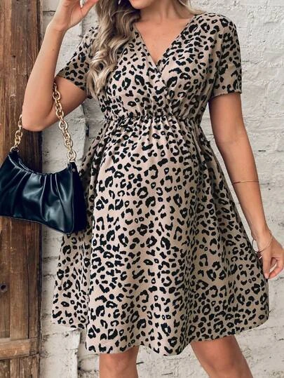 SHEIN Maternity Leopard Print Surplice Neck Dress