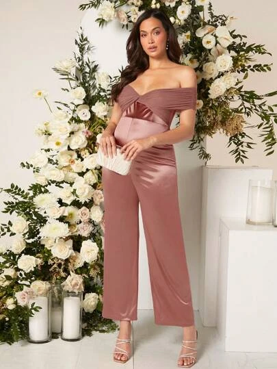 SHEIN Maternity Off Shoulder Satin Jumpsuit