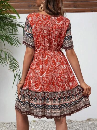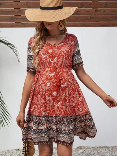 SHEIN Maternity Paisley Print Ruffle Hem Dress